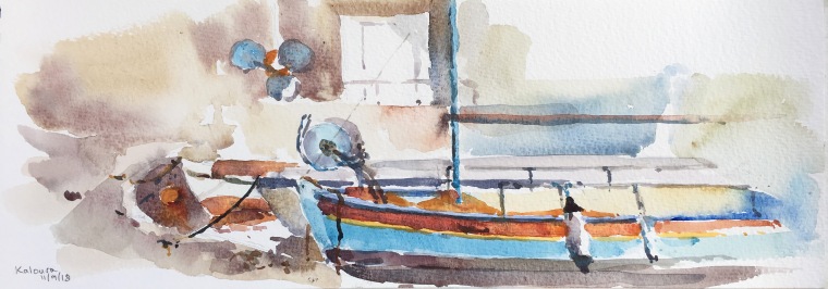 Unframed watercolour image size approx 40x14 cm Painted on location in Corfu.Please contact me for further details