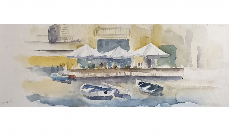 unframed watercolour painted on location in Sorrento image size approx 37x15cm