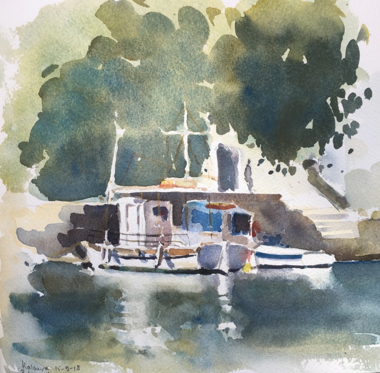Unframed watercolour image size approx 25x25 cm Painted on location in Corfu.Please contact me for further details