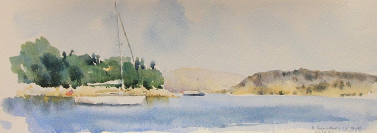 Unframed watercolour image size approx 40x14 cm Painted on location in Corfu.Please contact me for further details