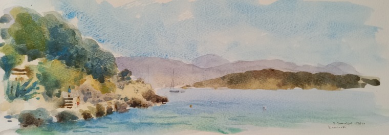 unframed watercolour image size approx 41x15cmSold watercolours - In stock