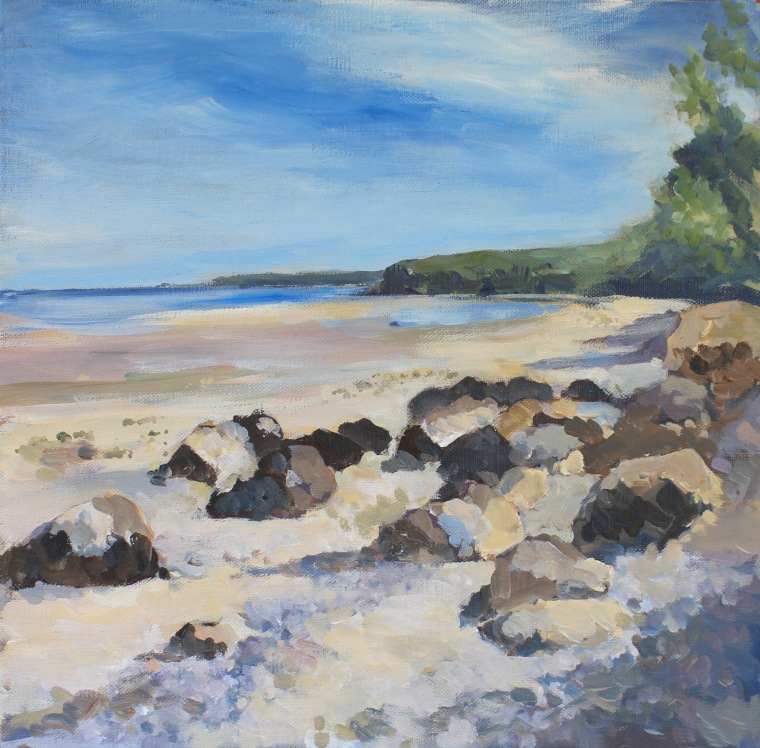 A framed 30x30cm acrylic painting of the view of Priory Bay, situated between Seaview and St Helens. On exhibition at Aqualibrium Gallery, Woodnutss Yard, The DuverSold oil & pastel paintings - Sold