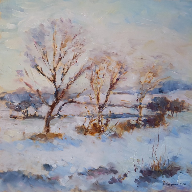 Oil painting on paper, framed. Image size approx 20x20 cmFramed size 35x35cm