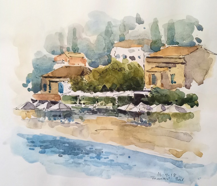 sketched on location in Kalami, Corfu image size approx 20x18cmSketches from Corfu and Tuscany - Sold