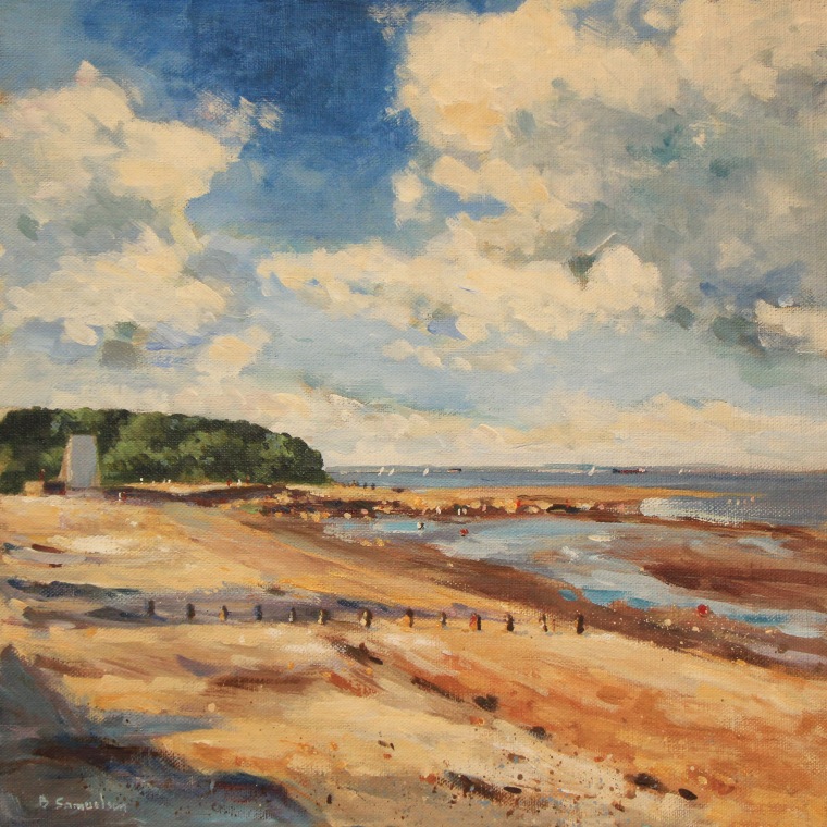St Helens beach and old Church Print