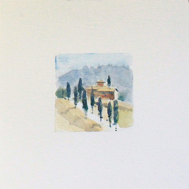 This is a small unframed watercolour image size 6x6cm. It has a watercolour paper border of 4.5 cm so that it can be framed leaving a pleasing space between the painting and the mount or you can take the mount up to the edge of the watercolour.Sold watercolours - In stock